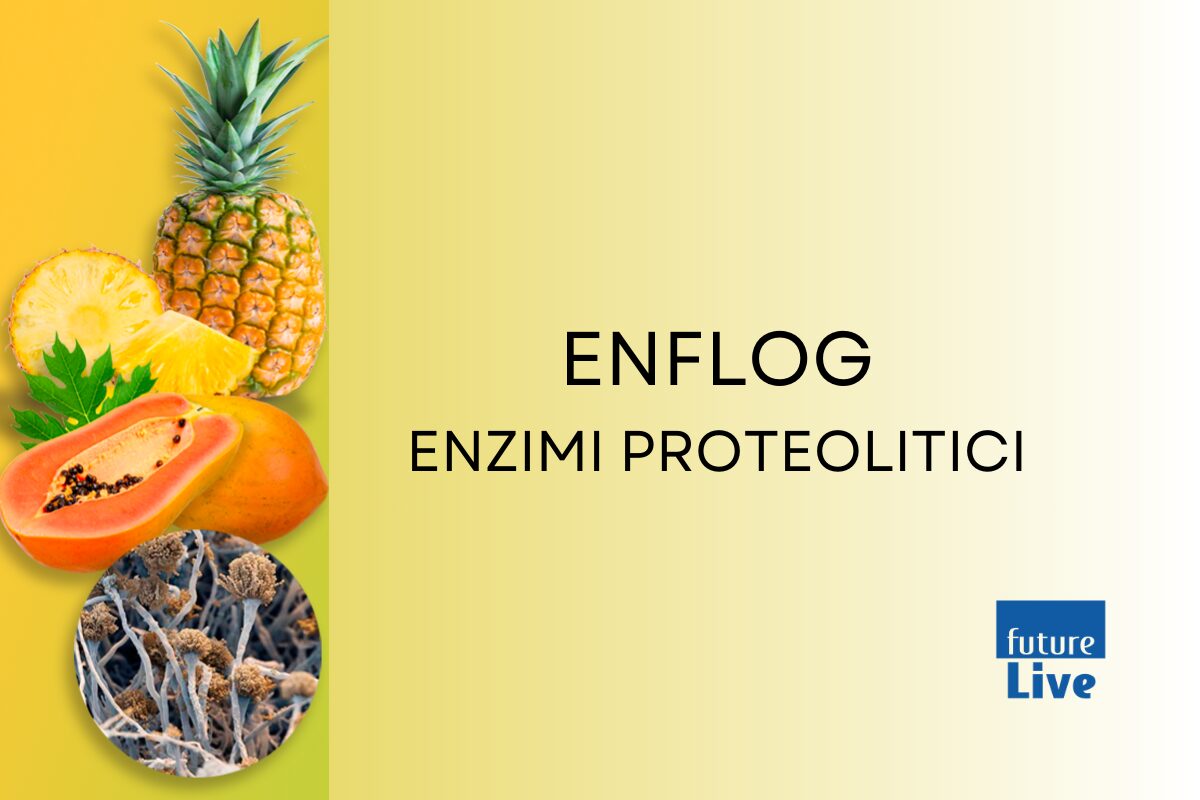 enflog® (patent no. IT102023000013842) is an enzyme complex (Bromelain from pineapple stem, Papain from papaya, Protease from the fungus Aspergillus oryzae) with standardized proteolytic activity. This precise set of enzymes was designed to act in synergy and with specificity toward protein substrates of interest. Patent no. IT102023000013842 was granted as its innovation and functional uniqueness were recognized. It certifies the ability of this enzymatic complex to interact with the biofilm produced by certain bacteria.